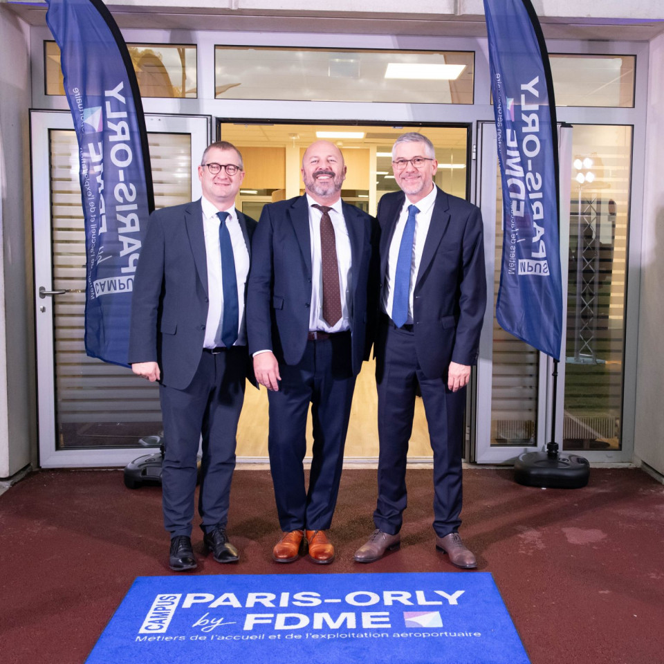Mi octobre, à Paray-Vieille-Poste, la FDME a inauguré le Campus Paris-Orly by FDME — un lieu unique, au cœur d'OrlyTech, dédié à la formation aux métiers de l’accueil et de l’exploitation aéroportuaire.